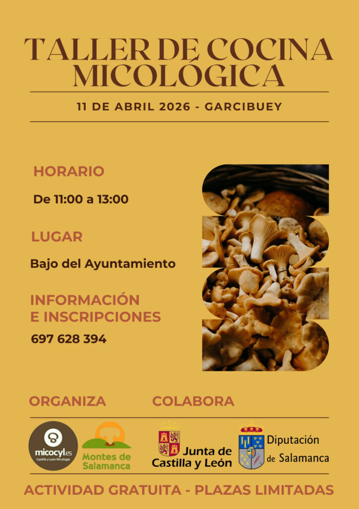 El próximo 11 de abril de 2026, Garcibuey acogerá un interesante taller de cocina micológica, una actividad pensada para todos los amantes de la gastronomía y la naturaleza. Este evento, centrado en el aprovechamiento culinario de las setas, permitirá a los participantes descubrir nuevas formas de preparar y degustar productos micológicos de la zona, poniendo en valor la riqueza natural de la provincia de Salamanca. El taller se celebrará en horario de 11:00 a 13:00 horas, en un entorno cercano y accesible como es el espacio bajo el Ayuntamiento de Garcibuey.