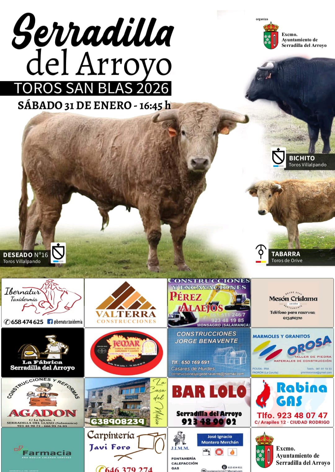 El próximo sábado, 31 de enero, a las 16:45h, en el municipio de Serradilla del Arroyo, se celebrará el tradicional toro de San Blas. ¡No te lo pierdas!.